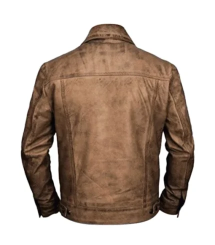Men Distressed Leather Trucker Vintage Jacket