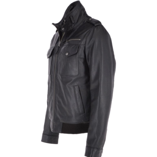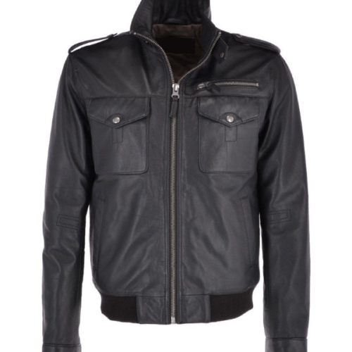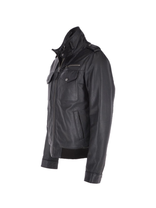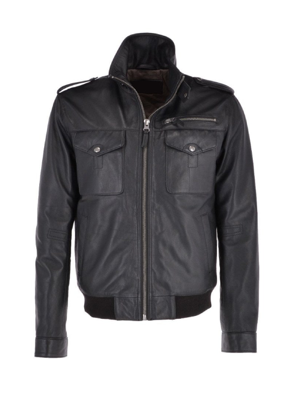 Black Leather Bomber Jacket Mens