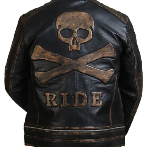 Men’s Distressed Black Skull Vintage Biker Jacket