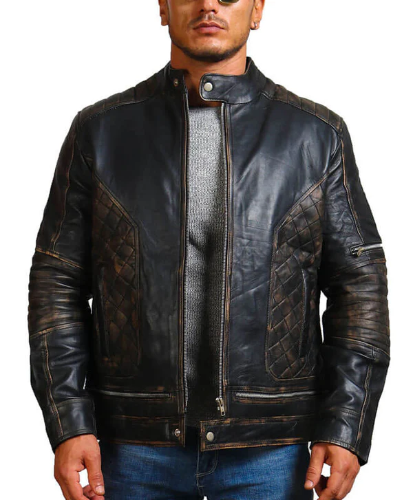 Distressed Cafe Racer Vintage Leather Jacket